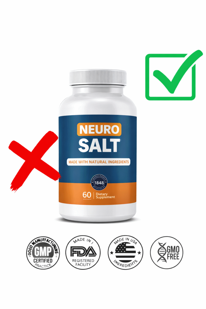💡 Although dietary supplements do not require pre-approval by the FDA to be sold in the U.S., Neuro Salt is manufactured in the United States in an FDA-registered facility that follows strict GMP (Good Manufacturing Practices) to ensure quality and safety.